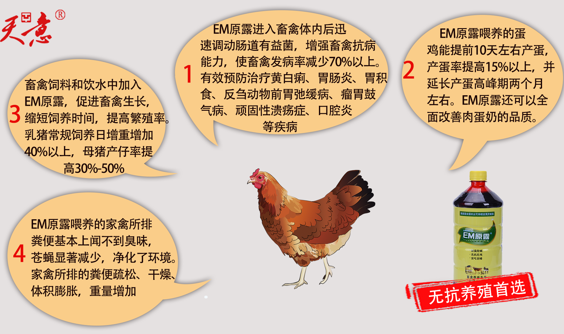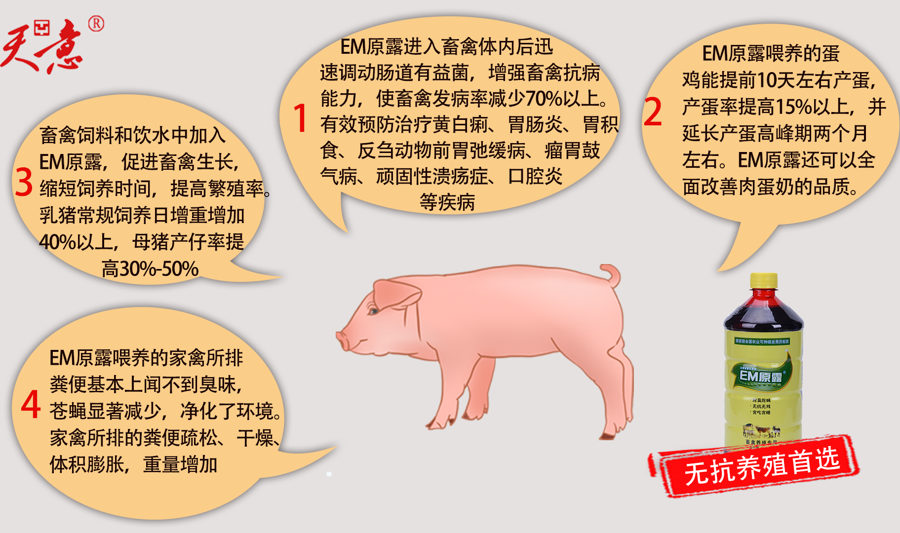 1995年初,天意集團(tuán)創(chuàng)始人與團(tuán)中央有關(guān)單位及中國(guó)農(nóng)大教授合作成立北京億安微生物工程有限公司,同時(shí)與中國(guó)農(nóng)大教授們?cè)诒本┲苓叺貐^(qū)開(kāi)展EM技術(shù)種養(yǎng)試驗(yàn),獲得滿(mǎn)意效果后注冊(cè)“EM原露”商標(biāo),確立日本EM技術(shù)在中國(guó)的商品名稱(chēng)。